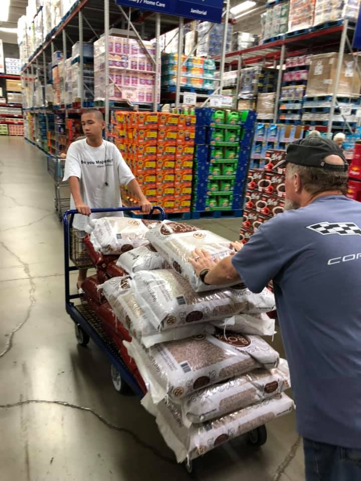 Monday morning we sorted the huge trailer load of clothes, canned goods, toiletries, shoes and such. A group of us struck out for Lexington in three trucks, including myself to buy food such as pinto beans, rice and such other things. We spent the majority of the day there and came back with over $3000 worth of goods.