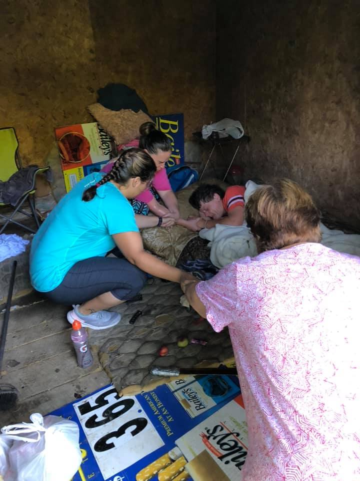 I’m summarizing, so not everything I saw is written here. But one other place we stopped was a house with nine children being taken care of by one woman, who had taken them in because their parents were on drugs. In her side yard was a van with tarps on sticks off the side of it where a woman and her son were living in. Neither place had power or running water. This was the case with many places we stopped.
